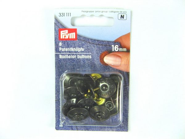 Patentknöpfe mit spitzem Stift, rostfrei, 25" - 16 mm, Karte mit 8 Stück.